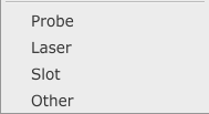 Beside normal tool types (mill, drill, centre drill…) user can also choose between Laser, Probe, Slot and Other as tool type. These four options are used when as tool, unconventional devices are used(laser module, probing device…).