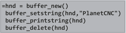 We would like to set a string data type(sequence of characters), to array with a handle name hnd. String data would be: PlanetCNC