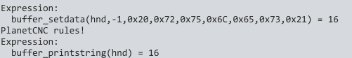 To our string of characters “PlanetCNC”, we want to add HEX representation of characters ” rules!” Final text would be “PlanetCNC rules!”