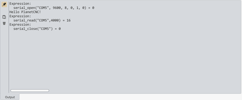 However, we need to make sure that PlanetCNC is ready to receive the call and is in “listening” mode, this is done using a serial_read() function: